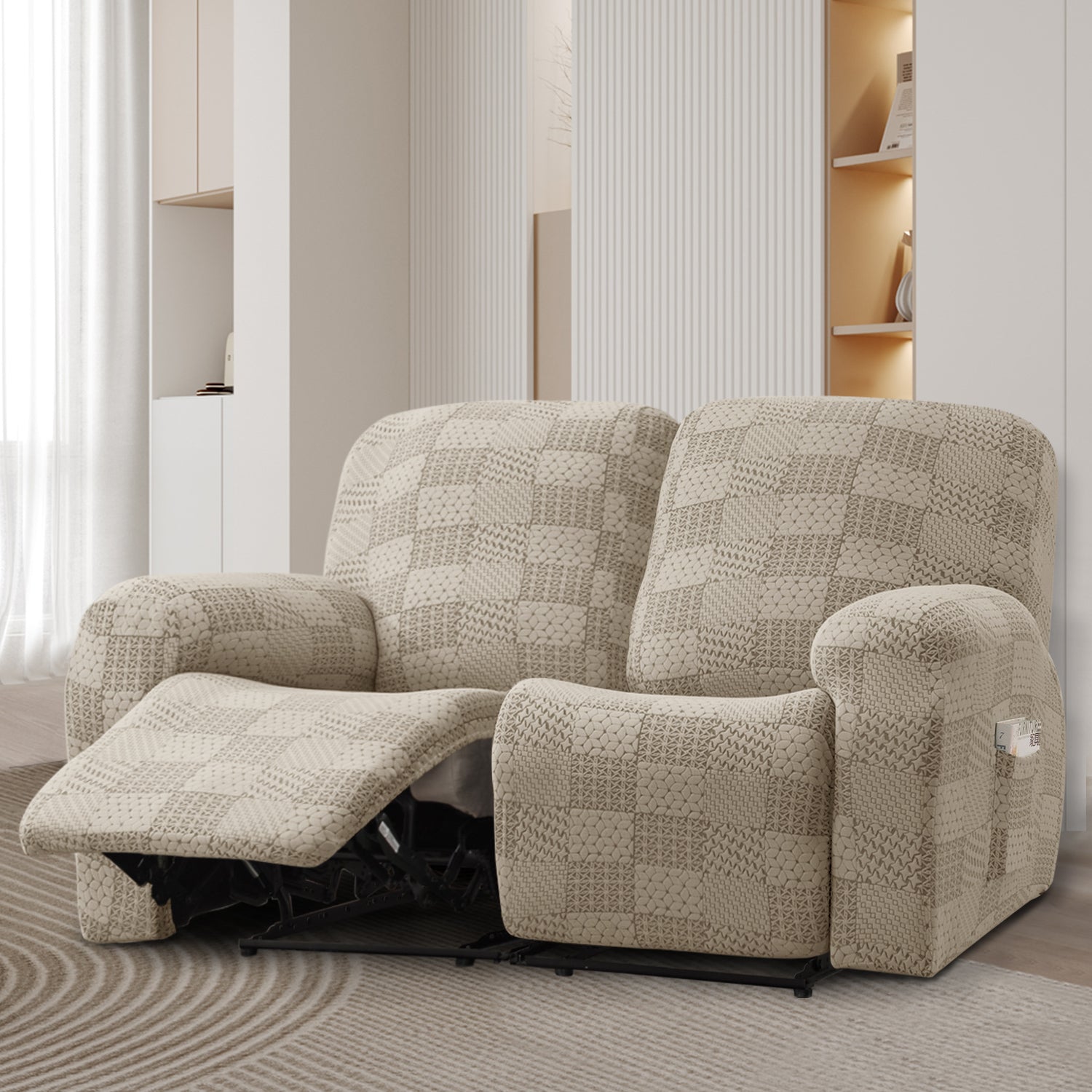 The split magic recliner chair slipcovers are made by durable 85% Polyester and 15% Spandex fabric, which ensuring a soft, comfortable, skin-friendly touch. Exquisite workmanship with small checkers making the recliner cover more thicker and fashionable. The decorative recliner slipcovers are durable enough for pets dogs cats scratch and bites, will not easily broke up. So the premium chair cover for recliner can be used for years
