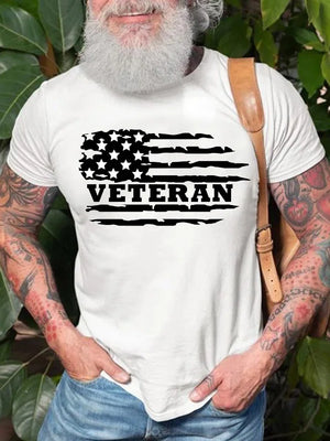Mens Casual Veterans Day Printed Short sleeve T-shirt