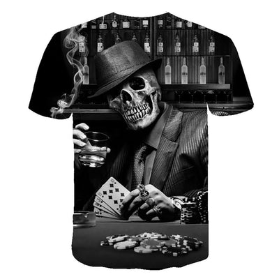 3D Graphic Short Sleeve Shirts Smoking Skeleton