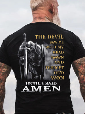 The Devil Saw Me With My Head Down Until I Said Amen Veterans T-Shirt
