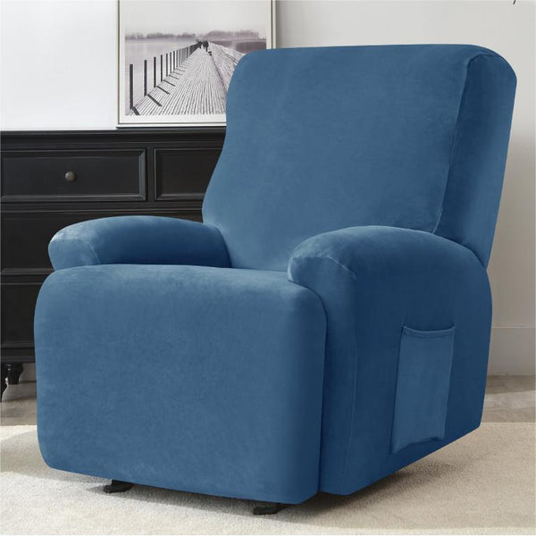 Our premium recliner slipcovers are crafted from luxurious velvet plush fabric, feature high stretchy and durability, extra soft and comfortable. Wrinkle-resistant and against tear polyester fabric. Slipcovers for recliner chairs constructed with thick elastic bands to cover the bottom edges well for a full protection, not easy to slip.