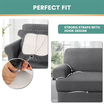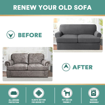 🌷[STAY IN PLACE]:Non-skid thick elastic bottom prevents sliding. And in order to better stay in place, the bottom of cover add three additional elastic straps, except box cushion. Our T cushion slipcovers could stay tight with no snag, no wrinkling, shifting or slipping even on both leather sofa and cloth. It is very easy to put on and take down. (Installation Instructions Included)