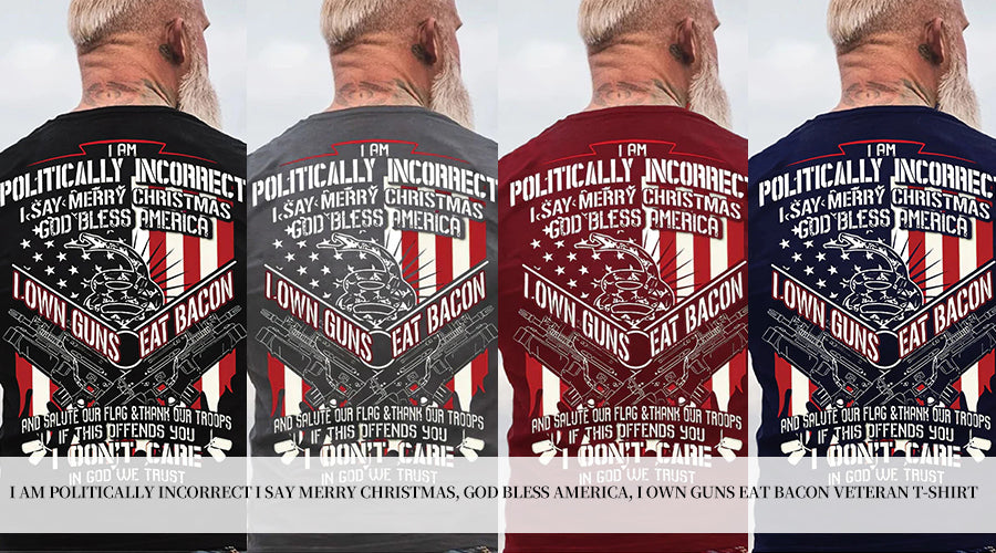 - Express your unapologetic patriotism with this politically incorrect t-shirt. Celebrate your freedom of speech and your love for America, all while making a lighthearted statement.