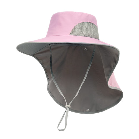 <Outdoor Mesh Wide Brim Fishing Hat With Neck Flap>