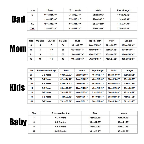 Styles for the Whole Family Comes in sizes for adults, boys, girls, toddlers, even provide sizes suitable for your pets, create a perfect match shape during the holiday, create family memories full of laughter, and start matching the pajamas tradition for the whole family!