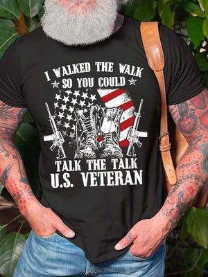 Men Talk And Talk Veteran Letters Fit T-Shirt