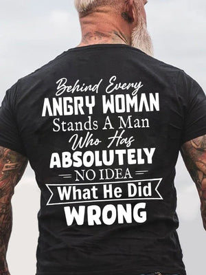 Men's Behind Every Angry Woman Stands A Man Casual Short Sleeve T-Shirt