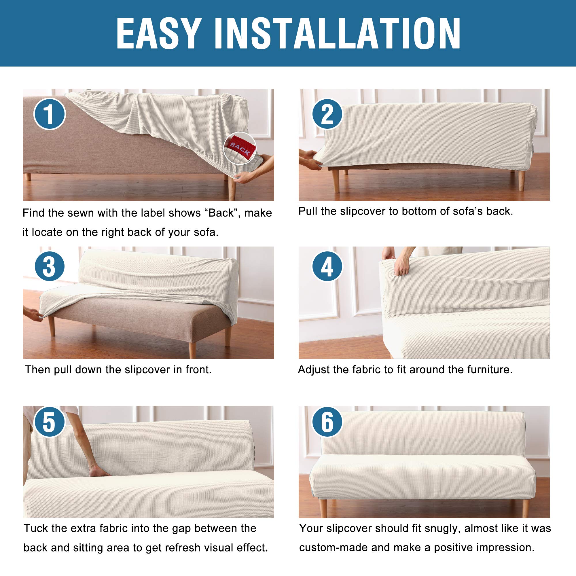 Effortless to install on and off (guild photos on selling page), constructed with thick elastic bands to cover the bottom edges well for a full protection, hassle free for wrinkle, keep staying in place firmly, high recommended for both leather and cloth sofa