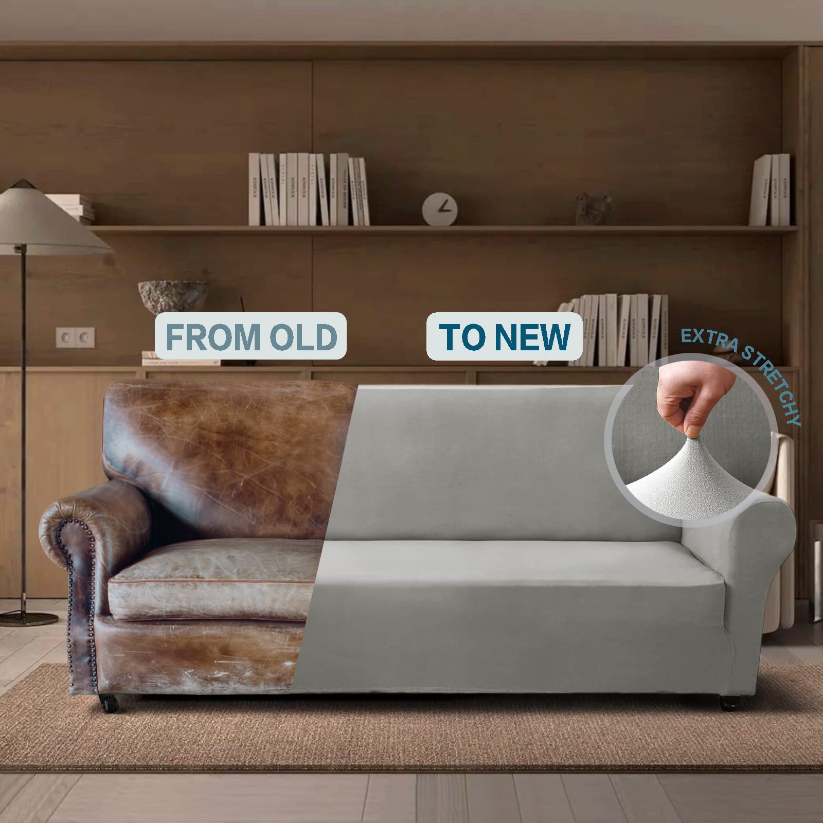 Soft and comfortable fabric protect your sofa from daily wear and stains.85% Polyester+15% Spandex, high quality stretchy jacquard fabric, soft and comfortable.