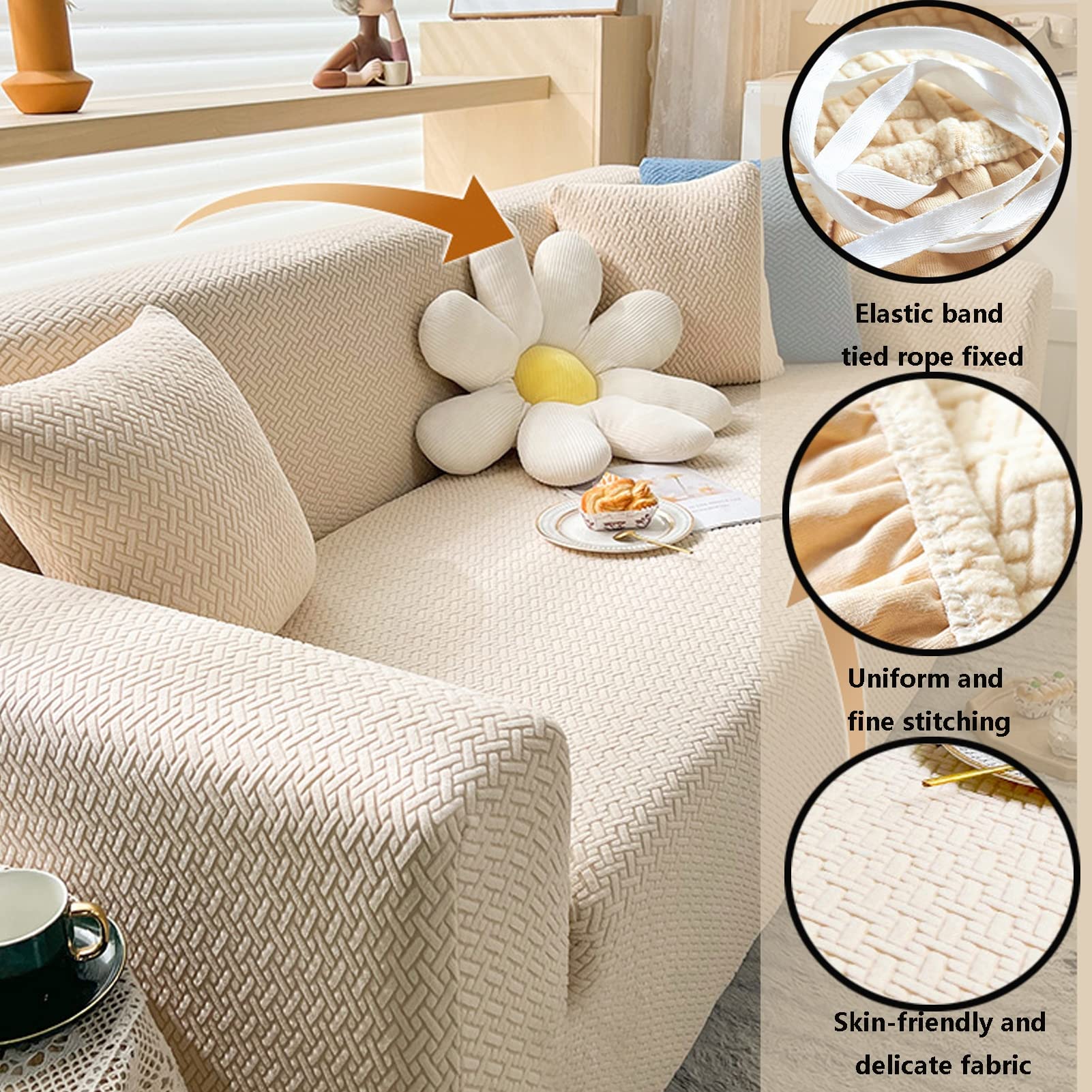 This sofa cover features . Available in a variety of colors to Suitable for multiple seasons, Add a new touch to your living room! These couch covers use unique environmentally friendly dyeing technology, which has high color fastness to keep the color unchanged after repeated washing. Save you money by extending the life of your sofa