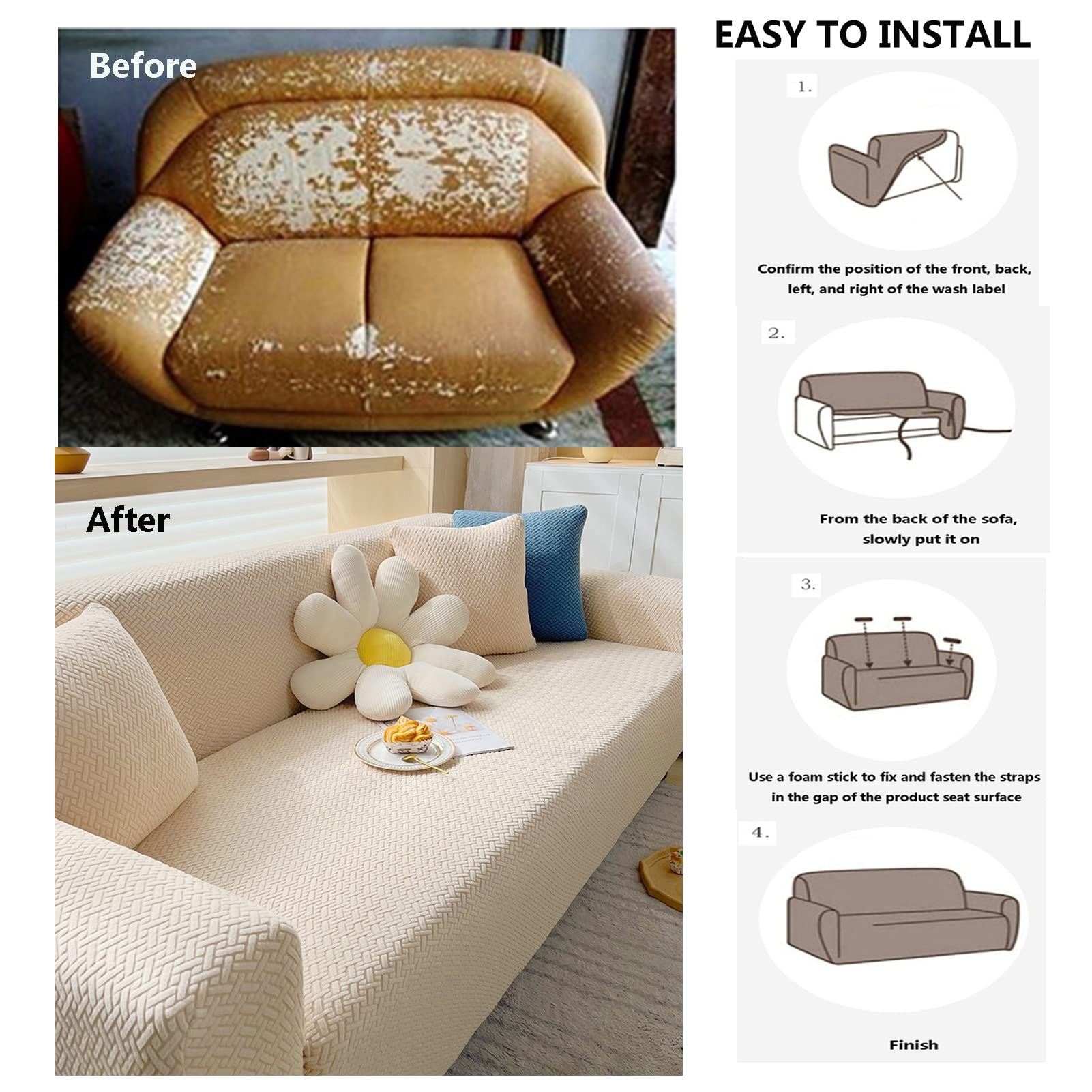 These soft sofa slipcovers can not only give people elegant and stylish feel, but also prevent damage and make your old or ugly sofa look elegant, luxurious and new instantly! Also can prevent your sofas from kids scribble or pet's cratch and bite. It is a convenient way to promote happiness without a big expense.Also, Joyinbox provide one free pillow cover as a small gift for coming 2025!