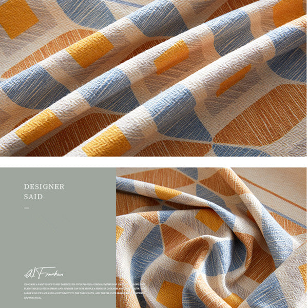 Decent elegant modern design, neutral not wild, with beautiful pattern.Stylish and simple style, excellent choice for decorating living rooms and kitchens.It is perfectly combine style and durability to protect and beautify your chairs and table.Set with table cloth and pillow cover make your home more harmonious and unique.