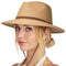 UPF 50+Wide Brim Panama Fedora Beach Hat with Wind Lanyard